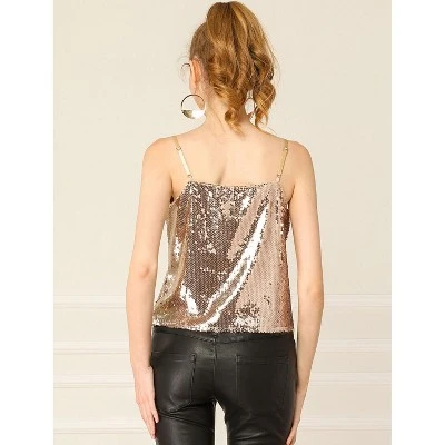 Allegra K Women’s Sequined Shining Club Party Sparkle Cami Top