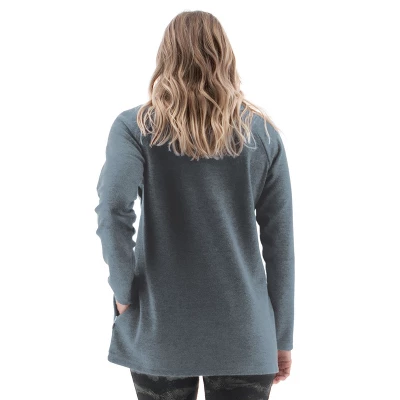 Ultra-softness and unique details make the Harlow Zip Neck Fleece a number-one seller, season after season. Melt into comfort with a soft, heathered outer and velvety fleece inner. Your hands will stay warm immersed in the same fleece with lined zipper pockets at the hips. The distinguishing quality of this midweight piece is the off-center zipper detail that runs from mock-neck along the raglan shoulder seam on the left side. Wear it open or close it up to keep cold breezes at bay. A tulip hemline mimics the natural movement of a wrap and gives feminine flattery.