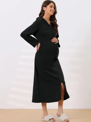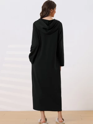 Womens Hoodie Zip Up Closure Pajama Nightshirt Long Sleeve Robe Loungewear with Pocket. This Hoodie Zip Up Nightshirt is the perfect choice for daily wear, or lounging wear at home. Versatile long dress for all occasions! With a loose casual maxi length, zip-up closure, soft fabric, and perfect hoodie design, this robe is everything you need for fully luxurious lounging wear. With a fully zip-up closure, practical pocket, and hoodie design, this nightshirt robe is everything you need for lounging, sleeping, or as a casual cardigan for outside
