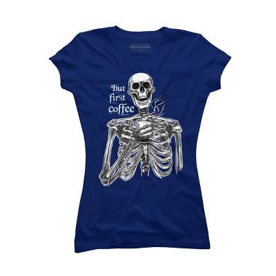 Get ready to fuel up your spooky adventures with our bone-chillingly cool “Halloween Skeleton But First Coffee” design! This electrifying design combines the thrill of Halloween with the essential need for a caffeinated pick-me-up, brought to life by an undead friend who knows that the best way to conquer the eerie night is with a cup of java in hand! Embrace the cool, the quirky, and the caffeinated this Halloween season with this premium ring spun cotton graphic Juniors’ T Shirt created by melazergDesign for Design By Humans.