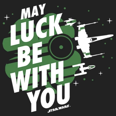 - This cool design features an X-Wing Starfighter with the words “May Luck Be With You”