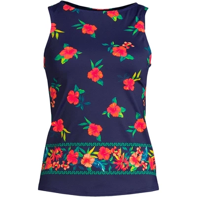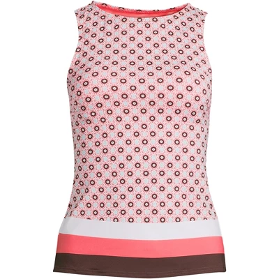 Hot days call for a tankini top that can pull double duty as a gorgeous shirt and this one is up to the job. The high neck and back provides the full coverage you want while offering solid protection from the sun with the help of UPF 50 fabric that prevents burns. If you wear one size on top and another on bottom it can be easily paired with whatever fits you best whether it’s a separate pair of board shorts with a pocket for your keys bikini bottoms or a swim skirt with a matching trim. Anything and everything will look cute! The soft stretchy fabric won’t sag after a few laps either. It’s also adorable worn with jeans and sandals; you can even add a statement piece like a sparkly necklace to dress things up. The soft cup bra gives you lift and support without poking or digging. The wide straps are incredibly comfortable too and give it an athletic feel that’s perfect for anyone who loves wake boarding surfing or even the exercise you get chasing kids around the pool. And yes it also works as a tank when dry. Wear it with a flowing skirt and sandals. It’s also appropriate for a quick trip to the store during a pool party.