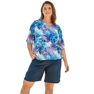 Protect from sun exposure with this swim-friendly tee featuring chlorine-resistant fabric. Split neckline. Wear over your favorite tankini or swimsuit. Unlined.