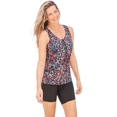 Swim 365 Women’s Plus Size Zip Front Posture Bra Tankini Top