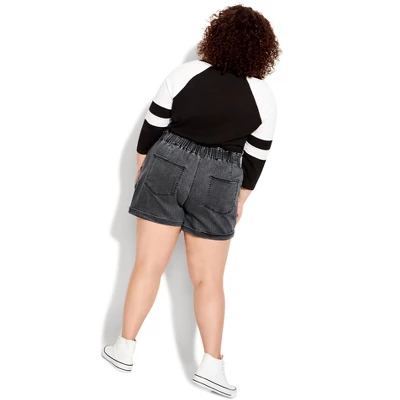 Show them what you’re made of in the black Hannah Short. Kicking your style up a notch, these stretch denim shorts are oh-so on-trend with their rolled cuffs and waist-enhancing ruching.Societie+ is the youthful urban aesthetic youre looking for, with tops, denim and cozy loungewear to add to your everyday wardrobe. This streetwear inspired label is designed with your curves in mind, ensuring effortless off-duty style comes with ease. Edgy, playful and packed full of attitude, Societie+ does casual styling oh-so-right. A youth brand designed to love curves, Societie+ offers distressed denim, playful dresses, loungewear and more. Off-duty and on-trend, find your perfect OOTD with Societie+! Available in sizes 12 – 32.