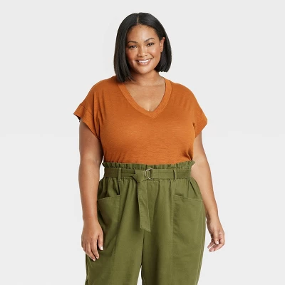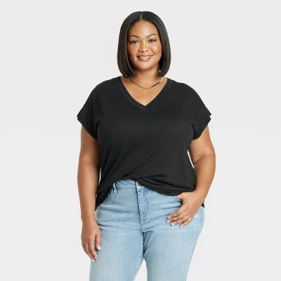 This Short-Sleeve Relaxed V-Neck T-Shirt from Ava & Viv™ in a solid color features a flattering V-neckline and a regular-fit silhouette with a below-waist length. The casual pullover tee made from slub jersey fabric is soft and comfortable to wear. Pair with your choice of bottoms to create a range of versatile styles.