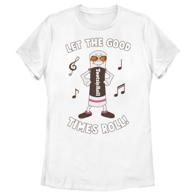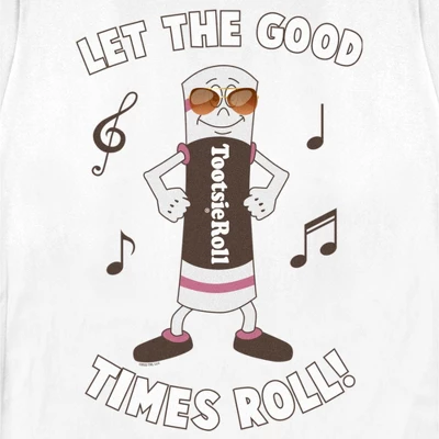 - Strut your stuff with this stylish new women’s tee that is perfect for every occasion, featuring Tootsie Roll Man surrounded by music notes and text that says “Let The Good Times Roll”!