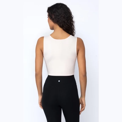 Designed with a compression fit to hold your chest down while jumping, running or stretching, this athleisure tank will keep you in place through any physical activity. This tank is made with four-way stretch fabric to move with you and allow a full range of motion.